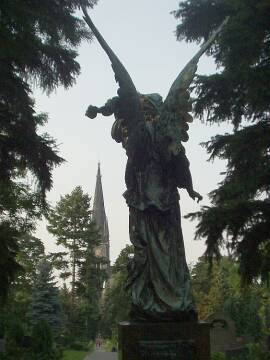 Zwischen Heimstraße und Lilienthalstraße liegen vier Friedhöfe nebeneinander: Der Dreifaltigkeitskirchhof, der Friedhof der Friedrich-Werderschen Gemeinde, der Friedhof der Jerusalemer und Neuen Kirche sowie der Friedhof der Luisenstädtischen Kirche. Alle sind vom Gelände her leicht ansteigend. Das nebenstehende Bild zeigt den überlebensgroßen Auferstehungsengel in Bronze von Otto Geyer. Sein Blick ist fest auf die Kirche am Südstern gerichtet.