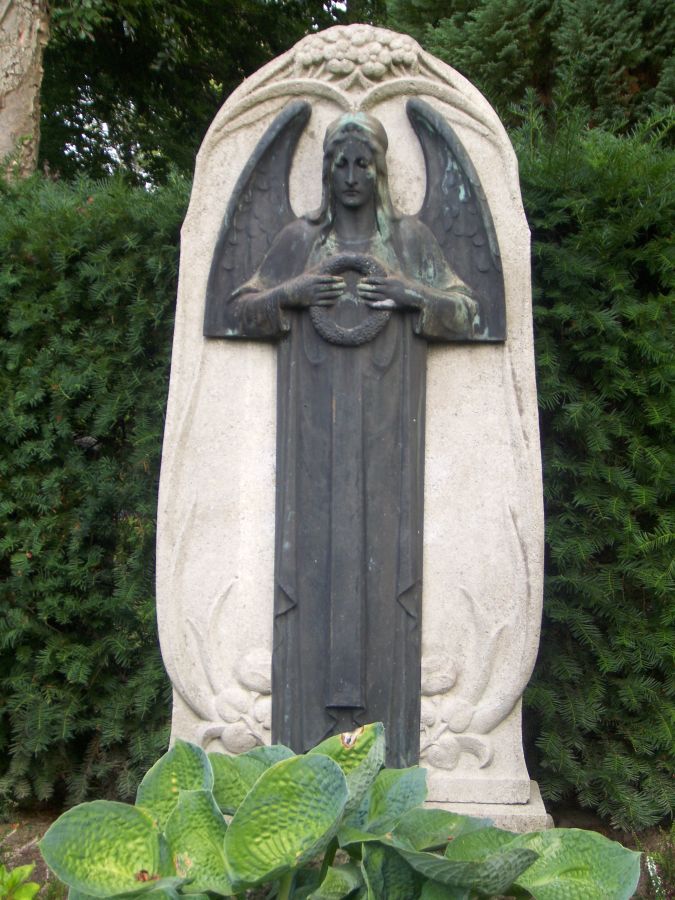 Friedhof Lichterfelde Berlin - schöner Jugendstil-Grabstein mit seltener Engelsfigur
