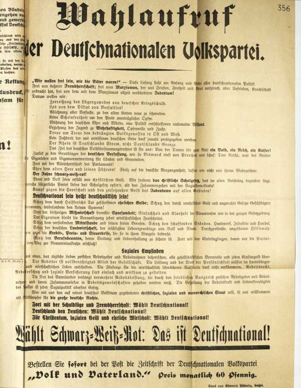 Zu dieser öffentlichen Wählerversammlung hatte der hier noch nicht in Erscheinung getretene Deutschnationale Arbeiterbund, in Verbindung mit der Deutschnationalen Volkspartei, an den öffentlichen Anschlagsäulen und durch die Zeitungen eingeladen.