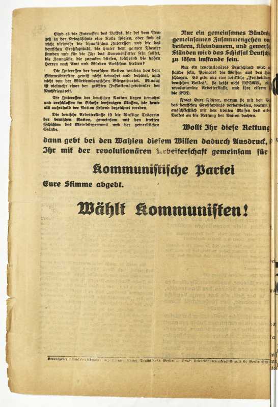 dass eine soziale Volksgemeinschaft in den Reichstag gehöre. Er schliesse in der festen Überzeugung, dass auch die Arbeiterschaft Cassel‘s für die deutschnationale Arbeiterschaft eintrete. ( grosser Lärm und Pfuirufe. )