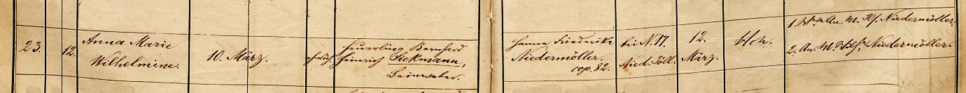 Anna Marie Wilhelmine | 10. März | ehelich | Heuerling Bernhard Heinrich Siekmann, Leineweber