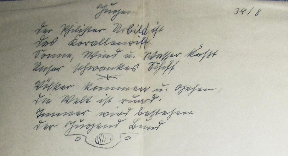 Kalte Weite Nordkap, Lappland, Finnmark - Eisbrecher stampfen das Meer - Die Tundra dampft oder friert, Die Sonne scheint hier so fern. Der Mensch lernt hier was er ist: Einsam, verhaftet dem Licht. Okt.1939 im Lazarett (v391000g.txt)
