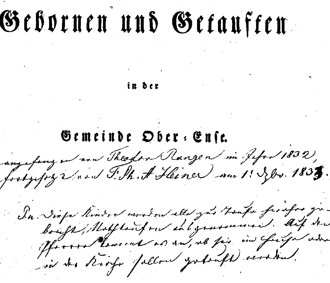 Gebornen und Getauften in der Gemeinde Ober-Ense